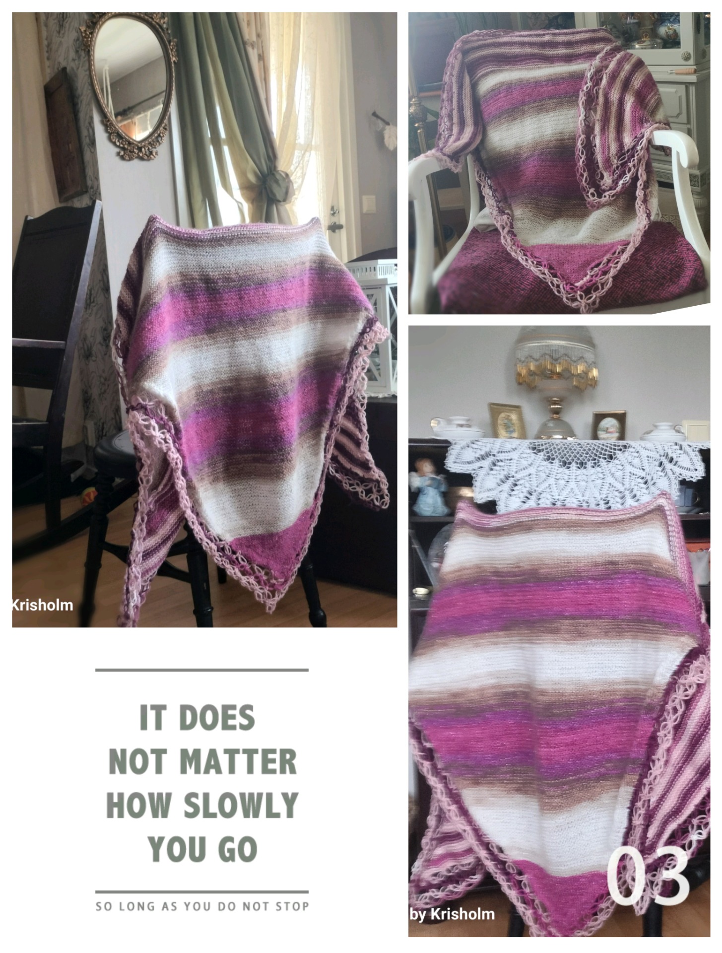 pst. Kun oma kolmiohuivini etenee, laitan lisää kuvia.